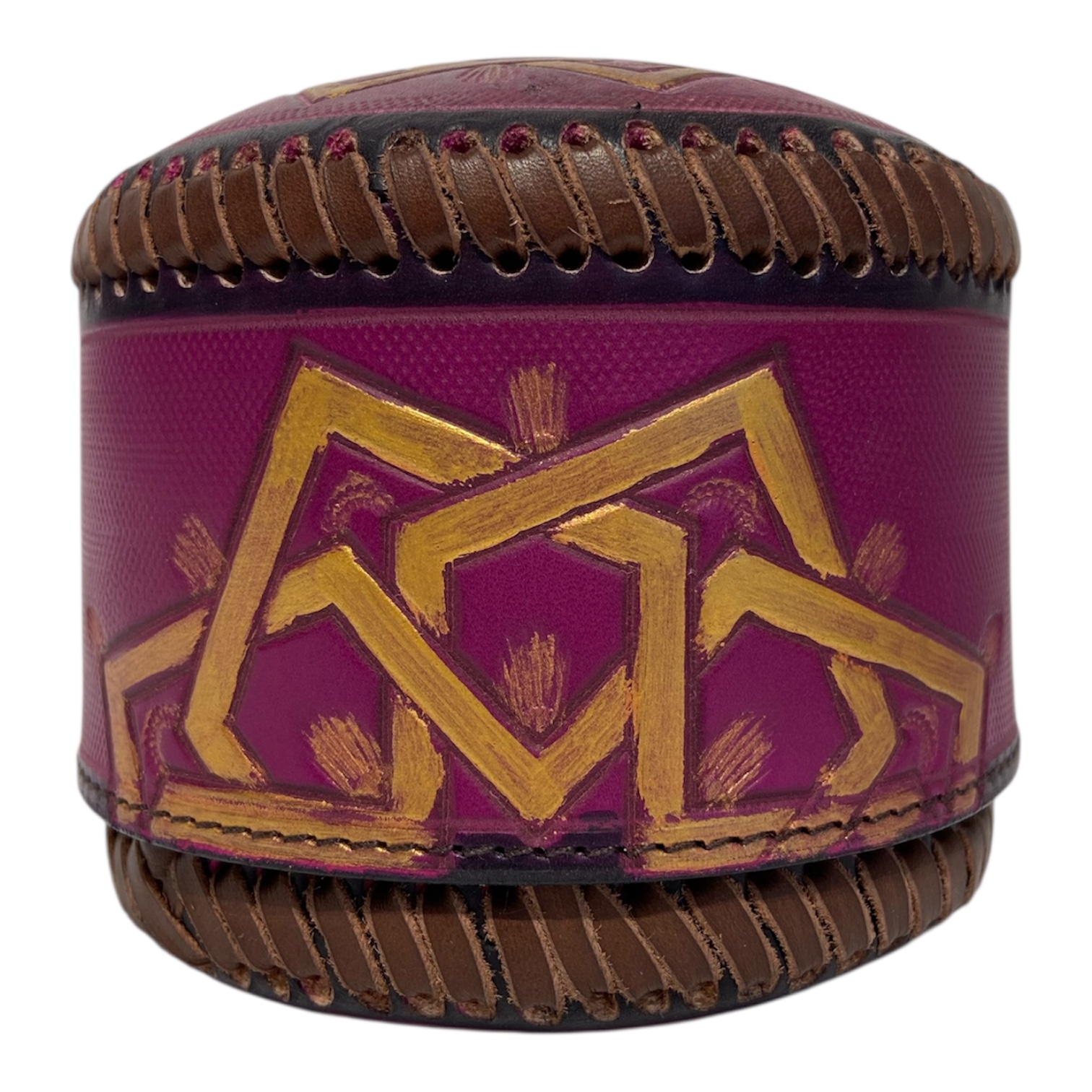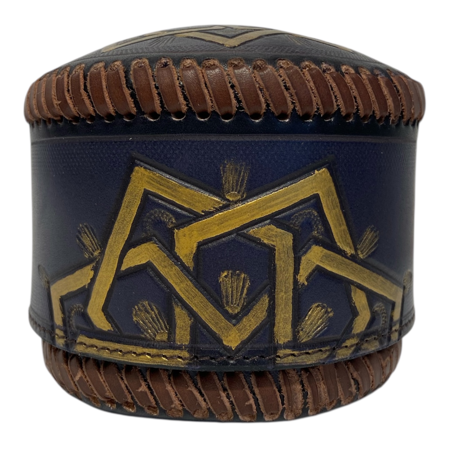Cosido con tireta de cuero: Con un acabado robusto y detallado, este cosido a mano asegura una estructura firme y duradera, resaltando la elegancia de la caja.